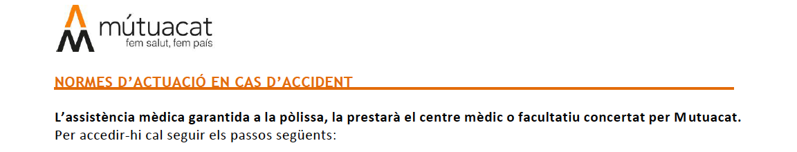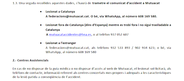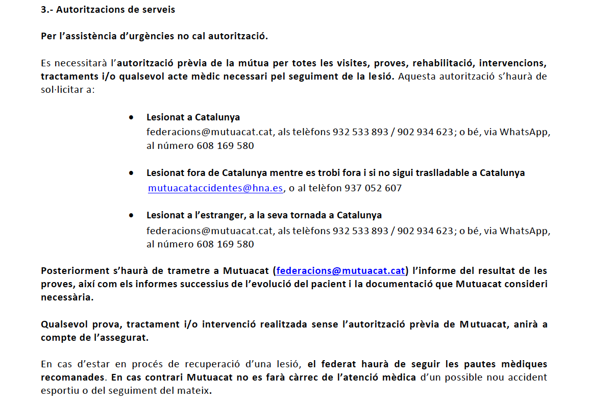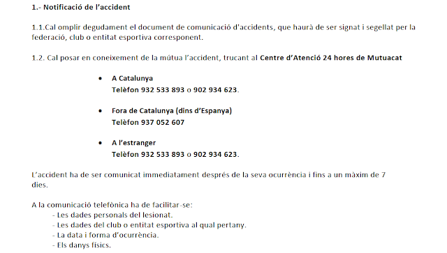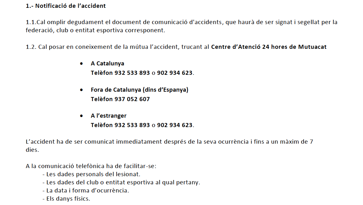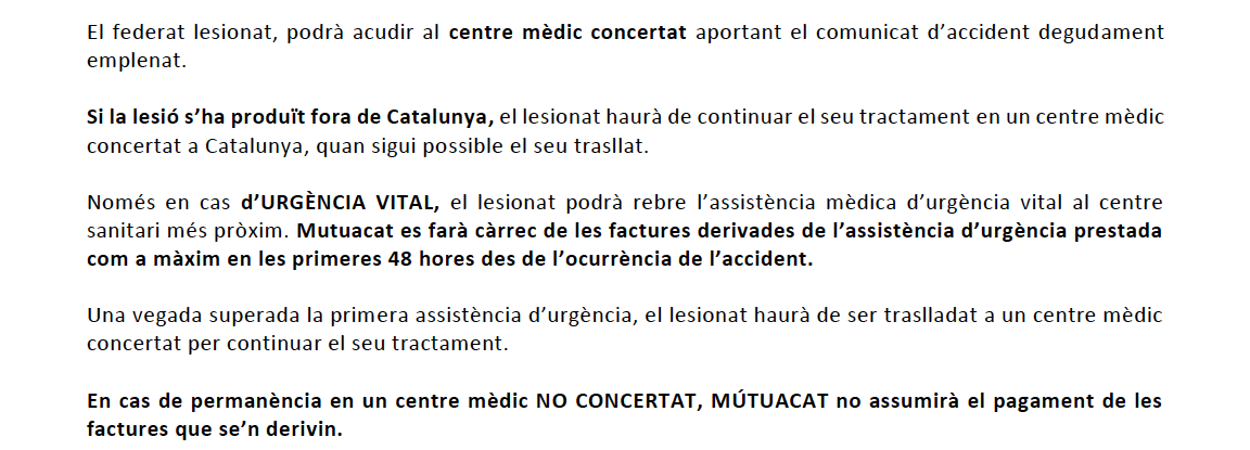 En cas de patir un accident esportiu durant la pràctica de triatló, tant en entrenament com en competició, cal seguir els passos indicats en el document Procediment en cas d’accident.